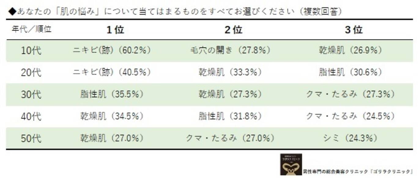 10 50代男性に聞く 各年代別 オトコの肌の悩み ワースト3ランキング発表 男性専門の総合美容クリニック ゴリラクリニック 調べ 18年2月15日 エキサイトニュース